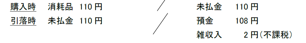 【例】先日付与された2円分のポイントを使用して110円の消耗品を購入